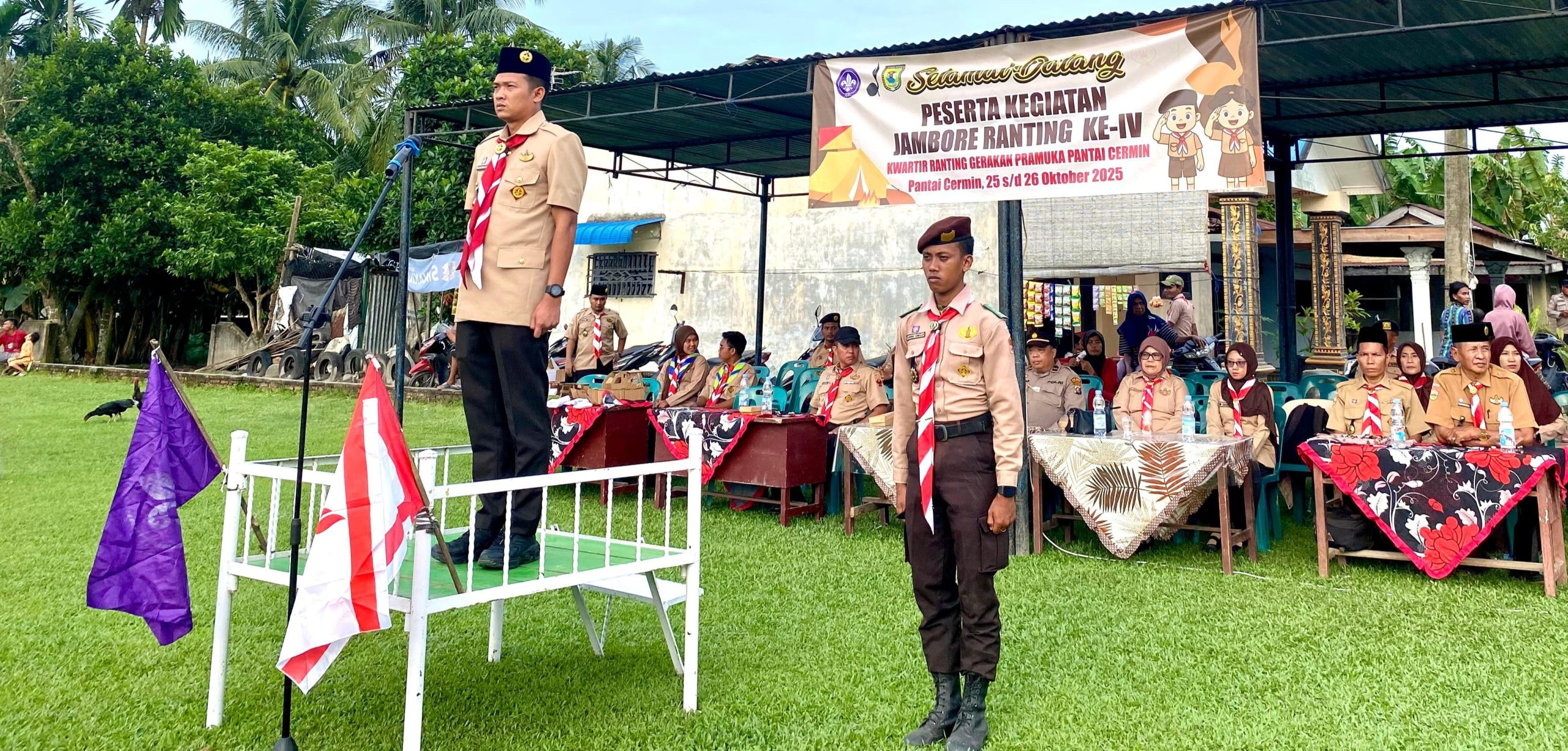 Camat Pantai Cermin Andy Akbar Perdana, SSTP MSP, yang juga menjabat sebagai Majelis Pembimbing Ranting (Mabiran) Gerakan Pramuka Pantai Cermin secara resmi membuka kegiatan Perkemahan Jambore Ranting ke-IV Kwartir Ranting Pantai Cermin, Sabtu (25/10/2025) di Lapangan Sukaramai, Desa Celawan, Kecamatan Pantai Cermin, Kabupaten Serdang Bedagai (Sergai)