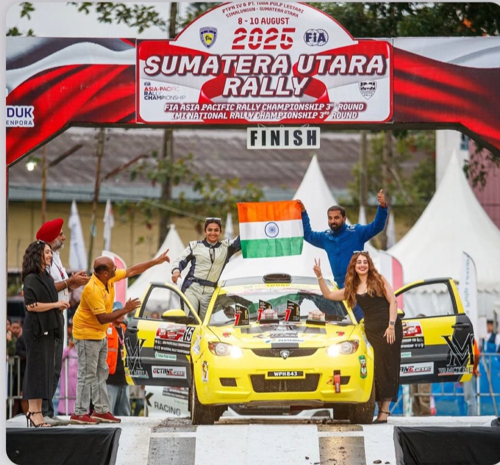 Indian female racer Nikeetaa Takkale expressed her enthusiasm and joy after completing her debut in the Asia Pacific Rally Championship (APRC) held at the Sidamanik Tea Plantation in Simalaungun Regency, North Sumatra Province, Indonesia, Sunday (10/8/2025).