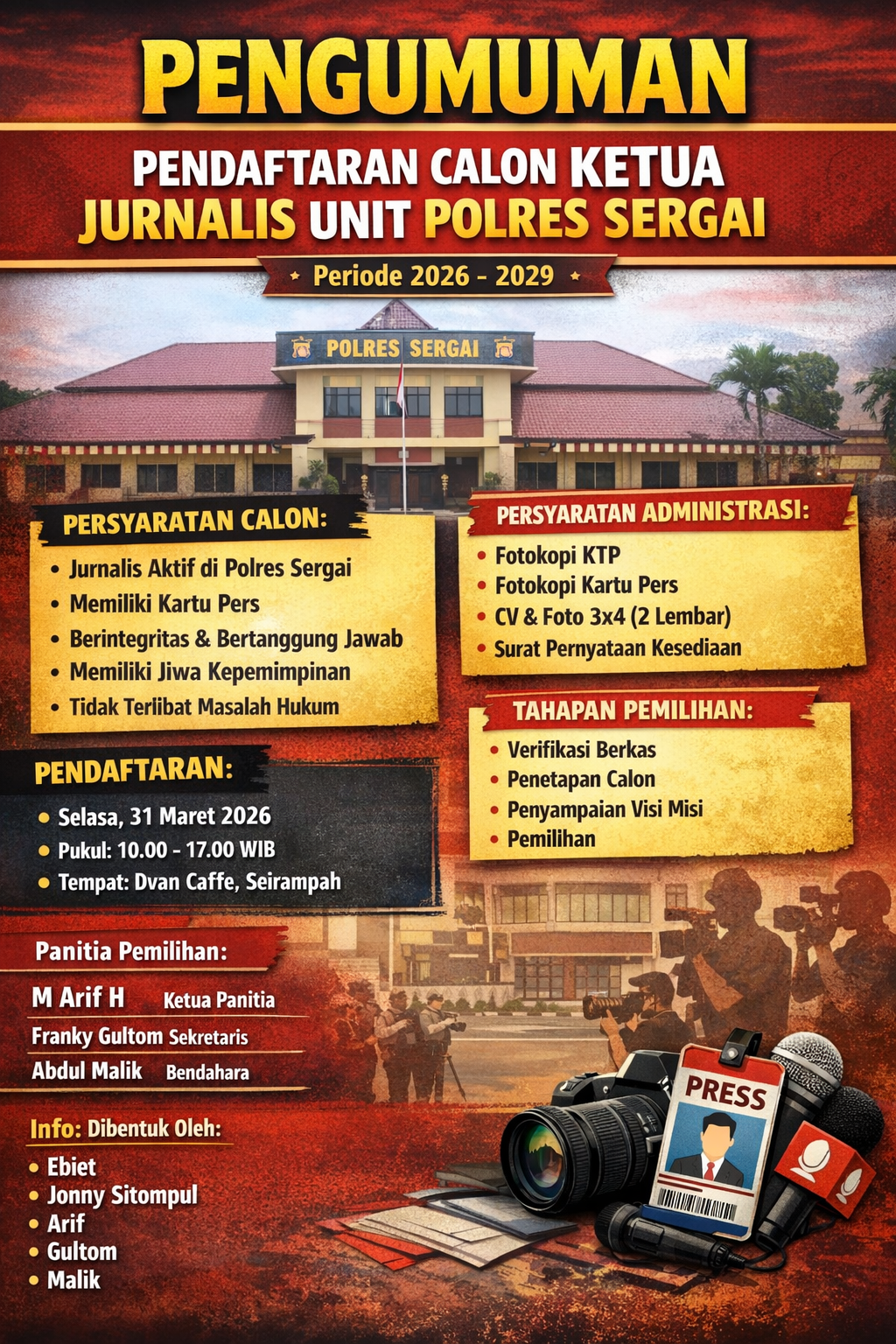 Pendaftaran Calon Ketua Jurnalis Unit Polres Sergai Periode 2026–2029 Dibuka