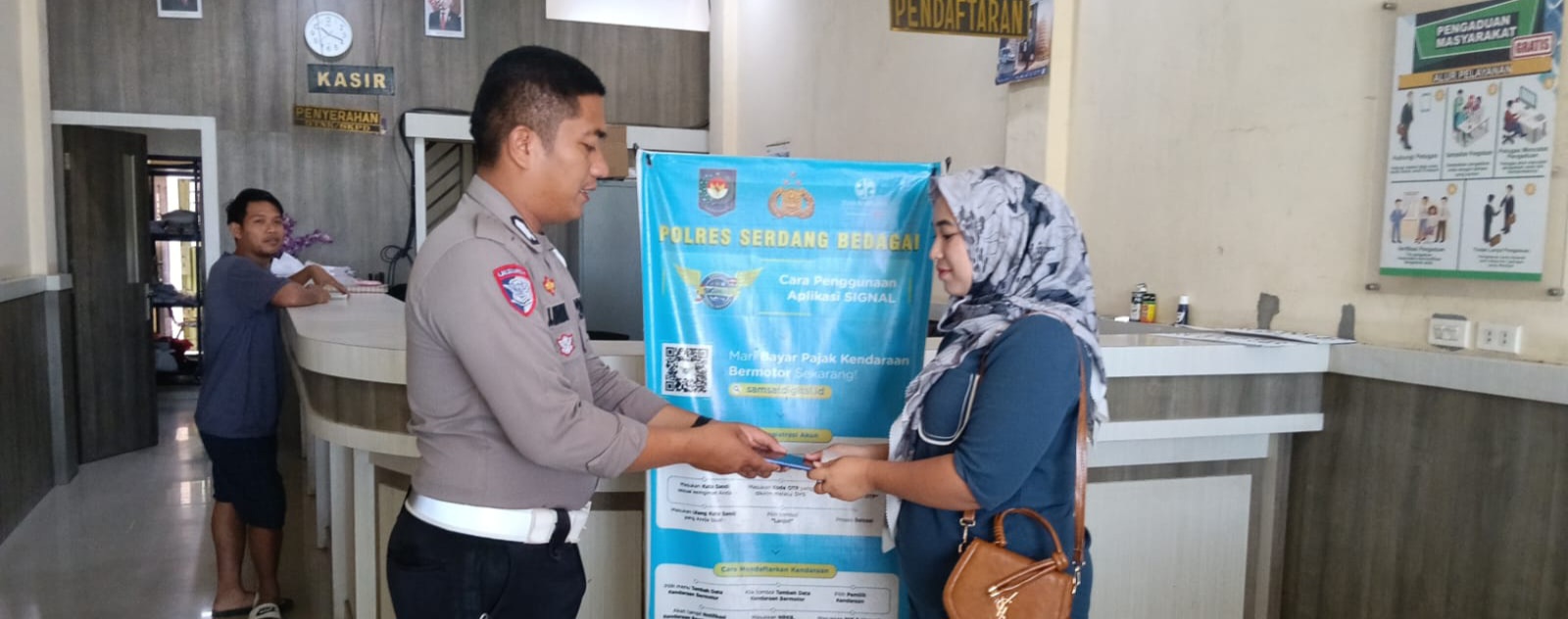 Salah satunya melalui pelayanan informasi yang aktif dan ramah kepada warga yang datang untuk membayar pajak kendaraan bermotor.